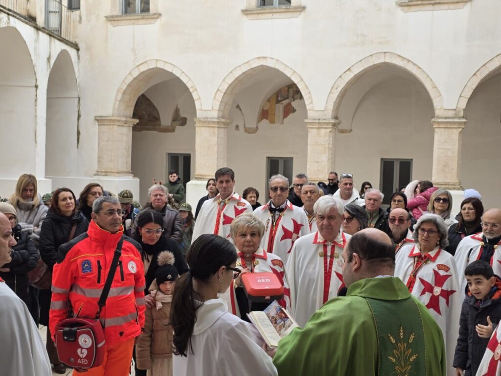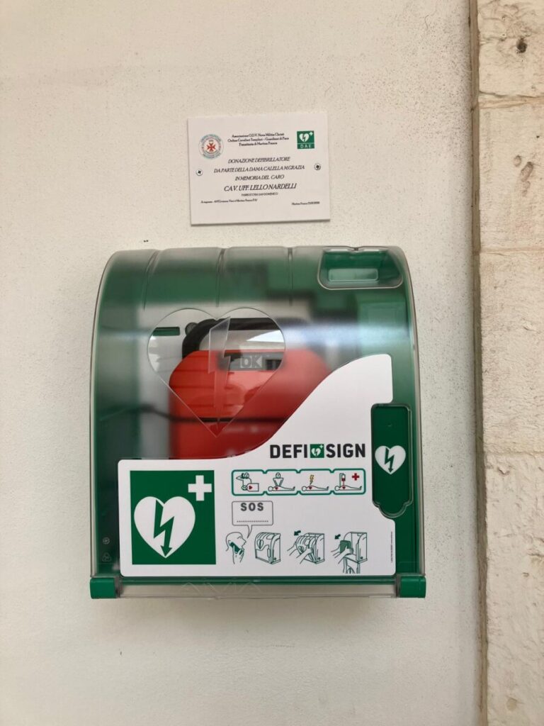 In memoria del marito e Cavaliere Lello, di recente venuto a mancare a causa di un arresto cardiaco, Maria Grazia ha voluto donare nello spirito Cristiano Templare un Defibrillatore alla Parrocchia di San Domenico di Martina Franca.